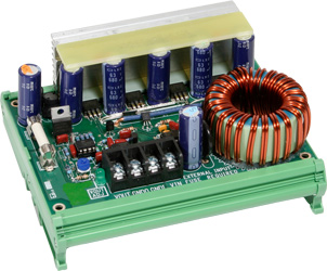 Voltage transformer from 24 V to 43 V for supplying actuators with a higher voltage.